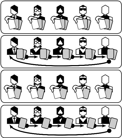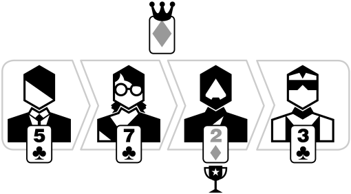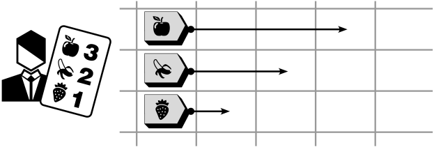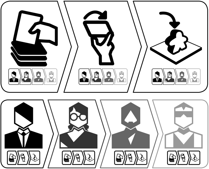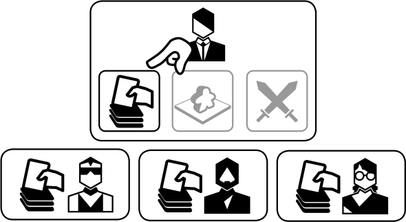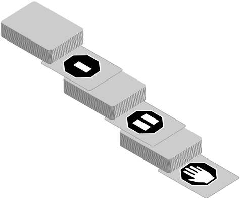 Drafting cards is closely related to Action, Drafting (ACT-02), and Worker Placement (Chapter 9). The core concept is the same in all of these: players select, in turn order, something for their exclusive use. What makes card Drafting different is the variety of design options afforded by the physicality of the card. The draft variant most similar to worker placement is the Rochester draft, as exemplified in The Networks. All available cards are laid on the table, and players each take one card on their turns. Play continues until all the cards have been taken or all players pass their turn. Like a worker placement game, Rochester drafts make all options visible and available at the same time. This can be overwhelming for players and can lead to analysis paralysis, just like in a worker placement game. By physically removing cards from the display, Rochester drafts simplify visually as the draft continues. Consequently, each card is also exclusive to the player who selects it, though designers can include multiple copies of a card if they wish for an action to be available to multiple players. In addition, for games in which cards are taken in hand and played in a later phase, Rochester drafts test the players’ ability to recall what cards their opponents took. In a worker placement game, the players’ pawns encode that information visually, and everyone can see where each pawn was played. Another simple draft mechanism is pick-and-pass. In Lords of Waterdeep, a game effect calls for the active player to draw a hand of cards equal to the number of players at the table, select one to keep, and pass the rest. Each player does this in turn, until the last player is left with the last card. Some games call for drawing one more card than the number of players, so the last player also has a choice. This mechanism is tightly coupled to turn order. Lords of Waterdeep leverages this coupling to provide the greatest return to the player who triggered the effect, but designers should take care not to overly advantage players based on turn order when using this mechanism. To mitigate turn-order imbalances, designers can implement a snake draft, in which the order of Drafting in round 1 is inverted in round 2, so that the last player in the first round becomes the first player in the last round. Snake Drafting mitigates but does not resolve turn-order imbalance. Assuming a level drop-off in the values of cards, the value of the first choice in round 1 and the last choice in round 2 is greater than the value of the last choice in round 1 and the first choice in round 2. In cases where values don’t drop off in a level fashion, the problem remains: some positions are superior to others. Games where the difference in value is negligible, or in which different selections have different values for each player, may be the best place to implement