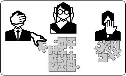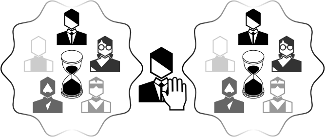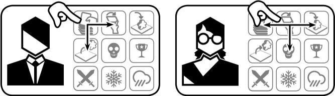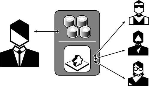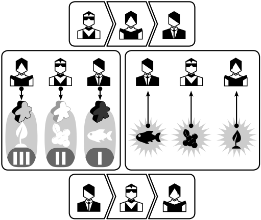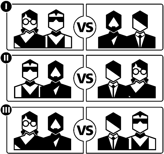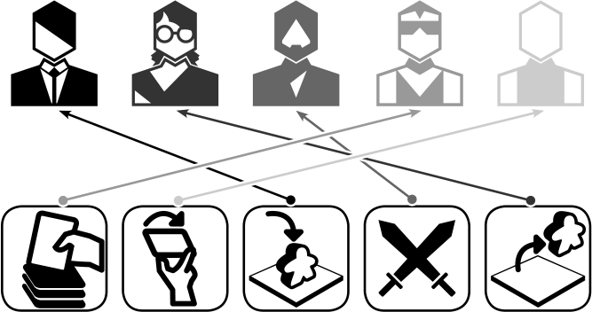 STR-03 Team-Based Games Assigning players to teams in secret is a common trope in social deduction and betrayal-style games. In Werewolf, the werewolves know one another, but the villagers are left to deduce who is a fellow human and who might devour them in the night. In Battlestar Galactica, neither humans nor Cylons are revealed to one another, leading to intense suspicion and paranoia. Battlestar Galactica features a further twist: team assignments are not static, and a player might start the game as a human, only to become a Cylon in a mid-game loyalty phase that can potentially reassign players from the human to the Cylon side. Some games support partnering at the meta-game level. In Risk, Diplomacy, and many other games, the rules specify that alliances can be formed and broken freely. There are even games that further encode these alliances into the rules. Dune provides for different end-game conditions for alliances with different numbers of factions, includes a specific phase when alliances may be formed, and has rules governing the conduct of allies (e.g., they may not attack each other). Eclipse establishes economic advantages for allying with other players, while limiting the number of these allegiances and enforcing in-game penalties on betrayers. There is a great deal of fluidity between games that allow for coordination in play and those that have explicit mechanisms to support that coordination. Another common approach to team-based games is to assign players different roles in the game. This goes well beyond the distinct player abilities common to many co-op games. Party games from Celebrity to Taboo to Codenames feature one player in a clue-giving role, with one or more teammates in a guessing role. This structure is especially suitable for party games because of the concurrent play of the guessers and the ability for the game structure to support large numbers of players at any one time. It also allows players to easily enter and exit from a game without negatively impacting the overall play experience for other players. It is not just party games that embrace role separation, though. Space Cadets: Dice Duel and Captain Sonar both have players crewing a ship as engineers, radar operators, captains, and weapons specialists. Each player plays a mini-game to model their function within the ship, and the broader game is the sum of these coordinated parts. Sometimes, these roles can be fixed for the whole game, sometimes, players will rotate through the roles every round, and sometimes, the game itself will force players to change roles. This last approach can be thematically interesting and appealing to experienced players but can be especially challenging for new players, who can easily be disoriented when forced to change roles. It also makes teaching