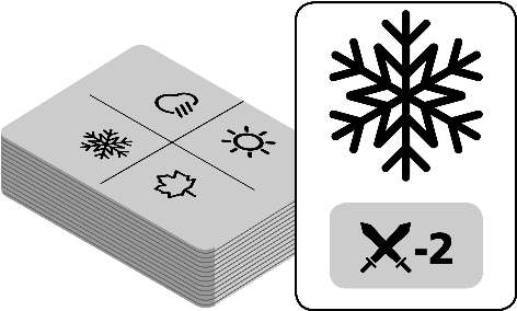 building an effective deck takes experience. Many games offer preconstructed starter decks that let players jump into the game and only later engage in the deck-construction elements. In cooperative and solo games, decks will typically have to be rebuilt to optimize deck contents for each scenario, making the meta-game activity of deck construction a key aspect of engagement with the game. An alternative to pregame deck construction is a draft format. CAR-06 goes into detail about draft options. Rather than having rules about deck size, numbers of copies of a single card allowed, and other restrictions, drafting naturally constrains players by only allowing them to select from the pool of available cards, a pool which is shared by all players. At the other end of the spectrum of agency and engagement lies Smash Up. Smash Up invites players to select two different faction decks and shuffle them together to produce one integrated deck. These faction decks are all preconstructed and so players are not selecting individual cards at all. This is the most extreme version of the limitations of deck contents, and it completely removes the barriers of deck construction, though at a high cost to the player agency in the design of the deck. Deck construction is part of a larger design pattern in which players choose the kinds of power-ups, abilities, and characteristics they want to play with. One axis of differentiation is whether the choices happen in the meta-game, as in a TCG, or in a pregame selection format. While Smash Up does technically have rules for drafting the available factions, players often simply just decide to play with some pair of factions without formally engaging in that process. In Seasons, on the other hand, players use a pick-and-pass drafting format (CAR-06) that is very much the first stage of the game itself, precisely because players are responding to each other’s choices as they move through the selection process. Notable marginal examples straddle a broad range. In Baseball Highlights 2045, players begin with preconstructed decks and draft new cards in between rounds. This is a kind of midpoint between deck construction, deck building, and preconstructed decks. In the solo scenario-based game Israeli Air Force Leader, players choose a squadron of pilots for each mission. One might even see Galaxy Trucker as an example of deck construction, albeit as loosely construed as possible. These examples demonstrate the wealth of possibilities available to designers in designing a meta-game selection experience for players.