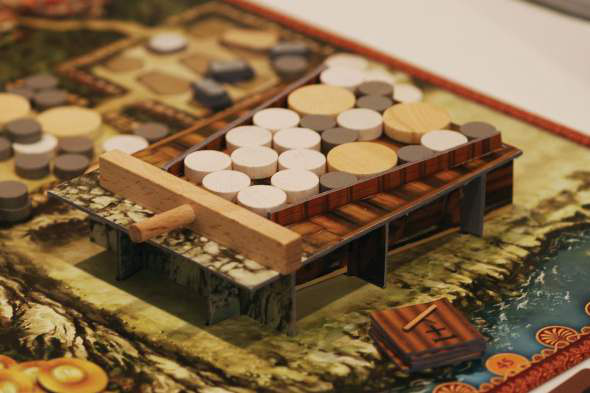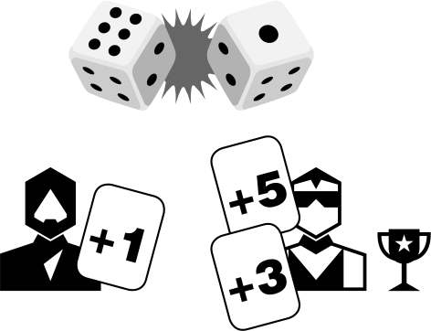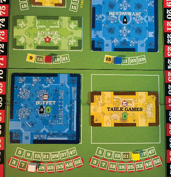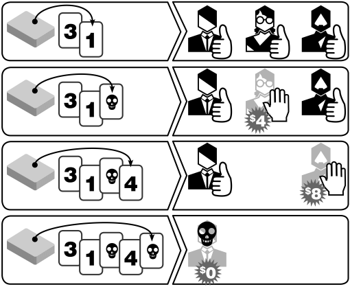 Score-and-reset is a very common game structure that is well represented among classic games from Bridge to Backgammon, and in modern games like Red7, Ravenous River, and Incan Gold. Card games are especially amenable to this structure, which matches well with playing out a hand of cards, shuffling and redealing. Games with a strong turn-order advantage can take advantage of a score-and-reset structure by having players take turns in the lead position and using cumulative scoring to measure who played best over a series of rounds. Stacking games like Rhino Hero use score-and-reset because once the shared structure is toppled, there’s a need to collect up the cards and pieces anyway, and this represents a natural end point. Whether players do in fact record wins and losses or points is to some extent a matter of the dynamics of