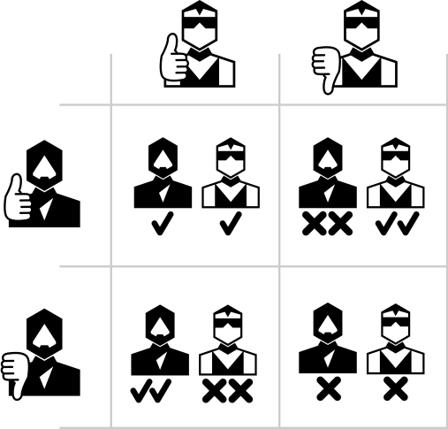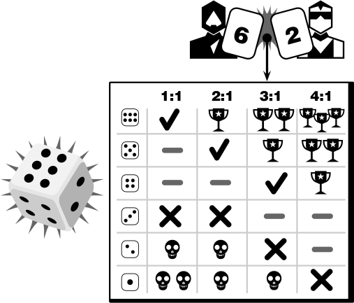 Semi-cooperative games are like cooperative games because players can all lose together to the game itself. However, if the players manage to overcome the game, one of the players will be crowned the individual victor, or a kind of most valuable player, based on some in-game achievement. A group’s enjoyment of this style of the game depends on all members having the same answer to the question of whether a group win, coupled with an individual loss, is superior to a total group loss. If players are split on this question, those for whom an individual loss is as bad as a group loss will not seek optimal cooperative plays and may even sabotage the group while trying to secure a winning individual position. Players who prefer to win as a group, even if they lose as individuals, will be incensed by this conduct, and unhappiness will follow for everyone. There’s a strong connection between semi-cooperative games and roleplaying games (RPGs). RPGs typically feature a similar dynamic: all players want to follow the main plot narrative and defeat the big bad, but each player has individual motivations that may sometimes work at cross-purposes, and in any case, each player is motivated to secure the greatest in-game rewards in terms of wealth, experience points, glory, etc. These competing motivations can help weave a complex and gripping narrative. In tabletop games,