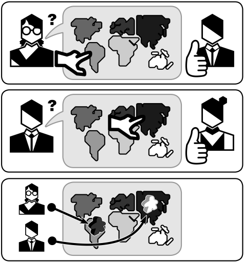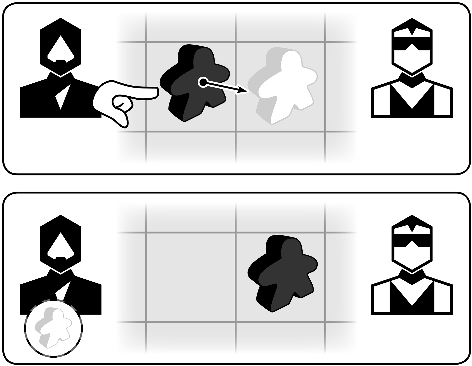 Another method for determining the behavior of an AI opponent is to have the player be the opponent as well. In this approach, the player wins or loses based on the fate of their primary faction, but they also play for the other factions in the game. At certain points in the game, the player may be required to change factions, typically switching from controlling their original faction to controlling the weakest of the other factions. Knowing that changes of faction control are part of the game gives the player incentive to keep all the factions relatively close, while putting their currently controlled faction in a position to grab victory. The Peloponnesian War is one of the earliest examples of this genre of solo play. Solo games are enjoyed by a large, active, and growing community that continues to homebrew solo versions of multiplayer games, host contests, and challenges and enjoy an unexpected comradery despite the solitary nature of their pastime. Increasingly, including a solo mode is a desirable feature for published multiplayer games, and the success of a number of solo-only games, like Friday and Hostage Negotiator, has established that there is a market even for the loneliest of player counts.