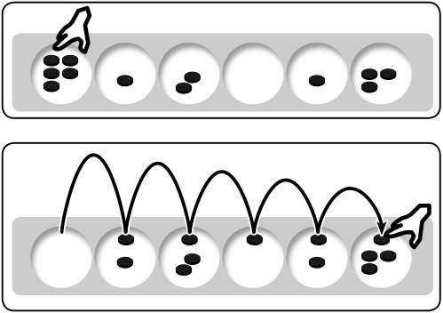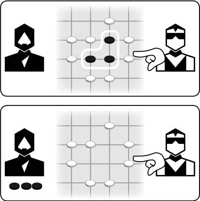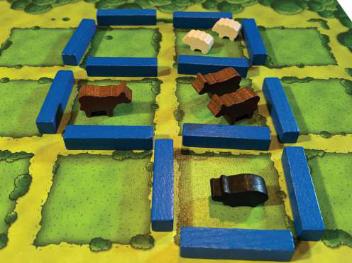 the game group itself. By contrast, dexterity games like KLASK and BONK reset after each goal, but scoring is rigorously tracked. Score-and-reset structures can be somewhat informal. Players might play a series of games of Hive and declare a victor after one player reaches some total number of victories. There’s not a sharp line between score-and-reset and round structure in general. Amun-Re features two ages, in which gameplay is identical, but the board itself does not fully reset. Pyramids built in the first age persist in the second age and influence the valuation of territories. In Blue Lagoon, the board is reset between the first and second half of the game, with the exception of the huts players lay out in the first half. However, the rules of placement change profoundly—where players were free to lay explorers on any sea space in the first half; in the second half, they must begin laying explorers adjacent to their huts.