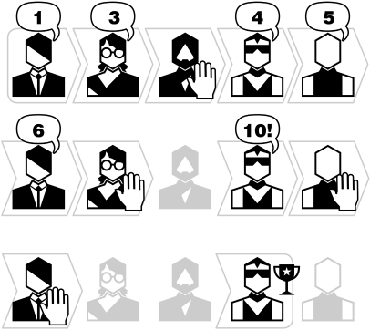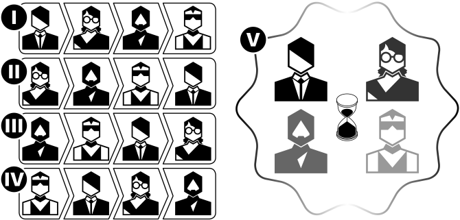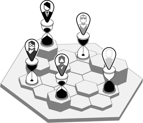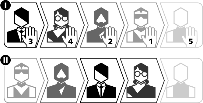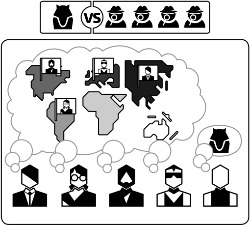 these games much more difficult, since, in theory, every player needs to know every mini-game before the play can begin. Designers need to take this into account, perhaps by reserving role-changing cards and other triggers for advanced play only. Somewhat less common are team games with more than two teams competing at once. Skirmish games like Star Wars: X-Wing can allow for these types of modes, but there are even more unusual examples. Cyclades with the Titans expansion enables a 2v2v2 mode, and Ticket to Ride: Asia also supports 2v2v2 play. Team modes are fairly common in otherwise non-team games, and some team modes are attempts to enable a 1v1 game to scale to a higher player count. The aforementioned Axis & Allies and War of the Ring have team modes, but players may simply choose to play using the 1v1 rules and have teammates collaborate in decision-making instead of using the formal rules for team play. Two other game genres feature partnerships. Card games, especially those in the trick-taking family, are one. The other partnership genre is dexterity games. Flick ’em Up has explicit partnership rules, and many flicking games like PitchCar and Caveman Curling are amenable to alternating play. Another very popular game structure is One vs. All. This structure is especially suitable for hidden-movement hunting games, in which one player attempts to escape from a group of hunters, like Scotland Yard, Specter Ops, and Hunt for the Ring. It’s also common in overlord-style games where one player controls the “bad guys” and the other players each control an individual hero. Conan, Star Wars: Imperial Assault, and Level 7 [Omega Protocol] all feature this style of play. Fantasy Flight Games has converted many of its overlord games into cooperative games by introducing an app to control the overlord player. What distinguishes One vs. All most sharply from other team games is the asymmetric nature of the factions. In hunting games, each player typically controls only one character, but the characters tend to have very distinct abilities, and the victory conditions for the two sides are different too. In overlord games, the overlord usually controls a whole host of minions that they can deploy, whereas the other players control only one
