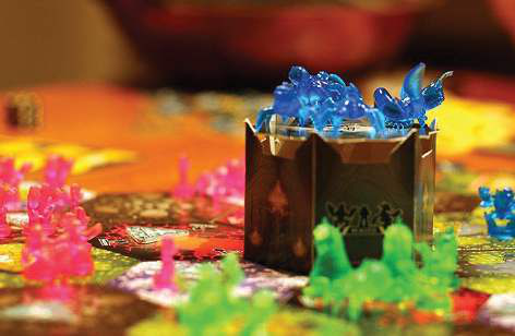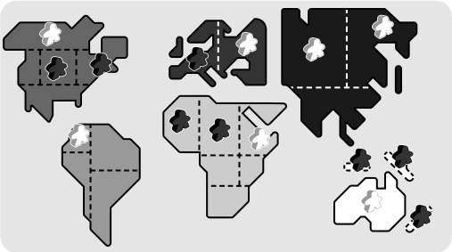 Team-based play is an ancient human pastime and is prevalent in sports, classic card games, and war games. Tematic board games that model some conflict often have to deal with a bilateral narrative, whether in the conflict of good vs. evil like in War of the Ring, the eponymous conflict of Axis & Allies, or the entirely fabricated battle between villagers and their lycanthropic tormentors in Werewolf. Team games allow designers to faithfully recreate these two-sided conflicts while making space for more players at the table. Most team games assign players to one team or another at the outset and allow collaboration and communication among partners. In some cases, partners may share territory and resources or even move each other’s pieces around the board. Early editions of Axis & Allies, for example, featured Commander-in-Chief rules to model the historical reality of coordinating attacks by multinational armies.