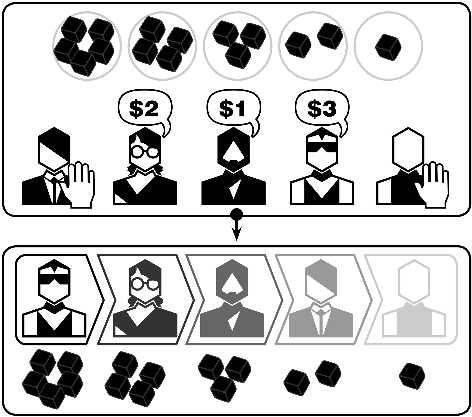 Many games can be described as a process of acquiring, manipulating, and spending resources. One of the main distinctions between modern and classic card games is the move away from random deals and draws and towards more agential means of acquiring cards. Auctions are one popular method (Chapter 8), but they can be cumbersome, mathy, and intimidating to many players. Drafting represents a quicker alternative. One way to think of a draft is that instead of precisely valuing each lot and bidding accordingly in an auction, players can instead ask What do I want most right now? Do I have to take it now, or will it be here for me next turn too?