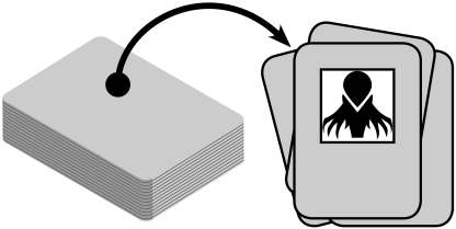 Prior to a multiplayer game session, players select the cards that will make up the decks they use during the multiplayer session. The game provides rules governing how decks may be constructed that typically covers the number of cards in the deck, required cards, restricted cards, and limits on copies of the same card. This mechanism is isomorphic to force-building or list-building in miniatures games and can more generally refer to any game that requires players to assemble private pools of game elements that they will use during play.