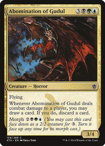 7 Wonders (Bauza, 2010) Horrified (Uncredited, 2019) Magic: The Gathering (Garfield, 1993) Terraforming Mars (Fryxelius, 2016) Illustration 13.2 Abomination of Gudul card from Magic: The Gathering. In addition to the CREATURE and HORROR tags, the ability section includes the Evergreen FLYING keyword and Set MORPH keyword. Note that FLYING does not include an explanation, while MORPH does.