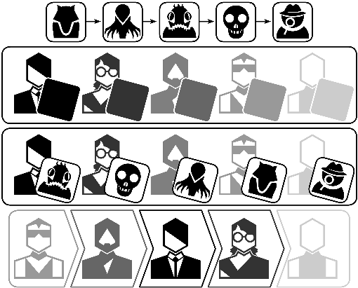 STR-07 Traitor Games have meaningful and interesting choices? Is catching the traitor a victory condition itself? Betrayal at House on the Hill is a traitor game with many story modules, each with its own mechanisms, that designers can treat it as a case study on this exact issue. Betrayal does not quite fit our definition of traitor game, in that the traitor is not determined at the start of the game. The initial part of the game, prior to the haunt that assigns the traitor role to one player, could perhaps be seen as an extensive gamified setup phase. In any case, the lessons from Betrayal’s story modes apply to games that fall more firmly within our definition. Another challenge facing traitor games is learnability. Like in team or One vs. All games, players have to learn how all the sides work to play properly. In traitor games with hidden identities, players can’t readily ask questions or consult the rules without giving away their loyalties. Good player-aids and reference material need to be the areas of focus. These games also usually require that the traitor player knows the game well, to maximize the potential of their position. This emphasizes the need for an easily learned game. Good player-aids can go a long way too, especially when the player-aids for both factions help explain how the opposite faction plays too.